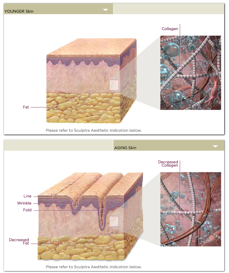Made from poly-L-lactic acid, Sculptra Aesthetic is used in the nasolabial folds – or marionette lines – and other deep facial wrinkles** to replace lost collagen. To learn more about Sculptra Aesthetic, including product safety, visit www.sculptraaesthetic.com
